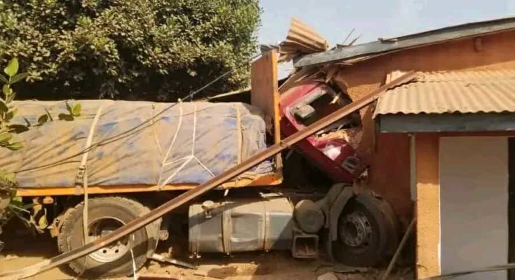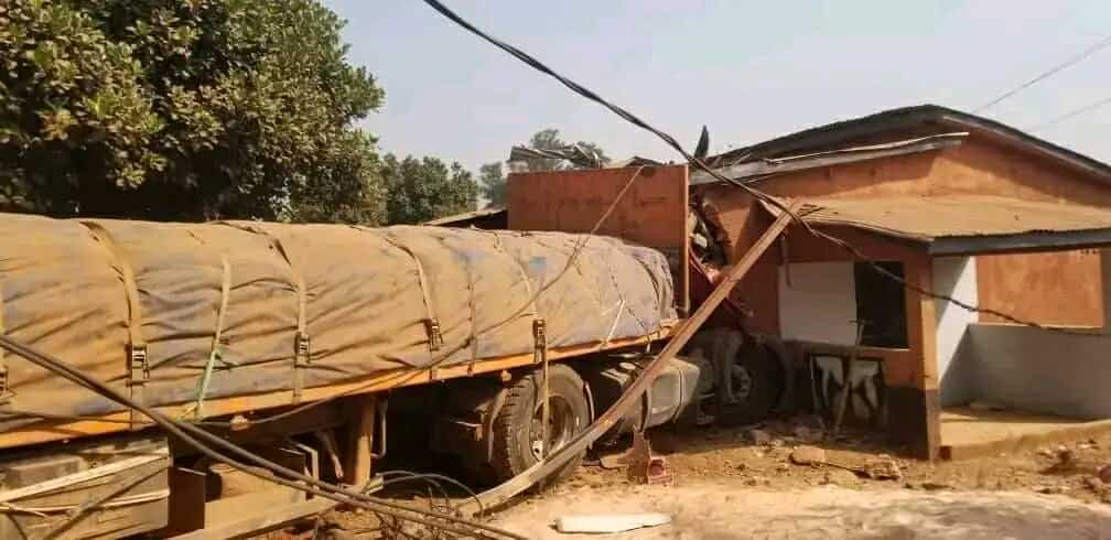 D’après les témoignages, un camion-remorque immatriculé BB 6763 aurait perdu le contrôle avant de quitter la chaussée. Le véhicule a terminé sa course dans une concession familiale située en bordure de route, où se trouvaient plusieurs membres de la famille au moment de l’impact.